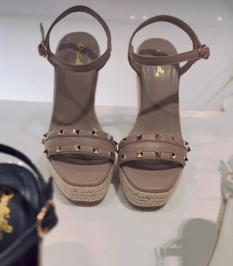 Tan studded wedge